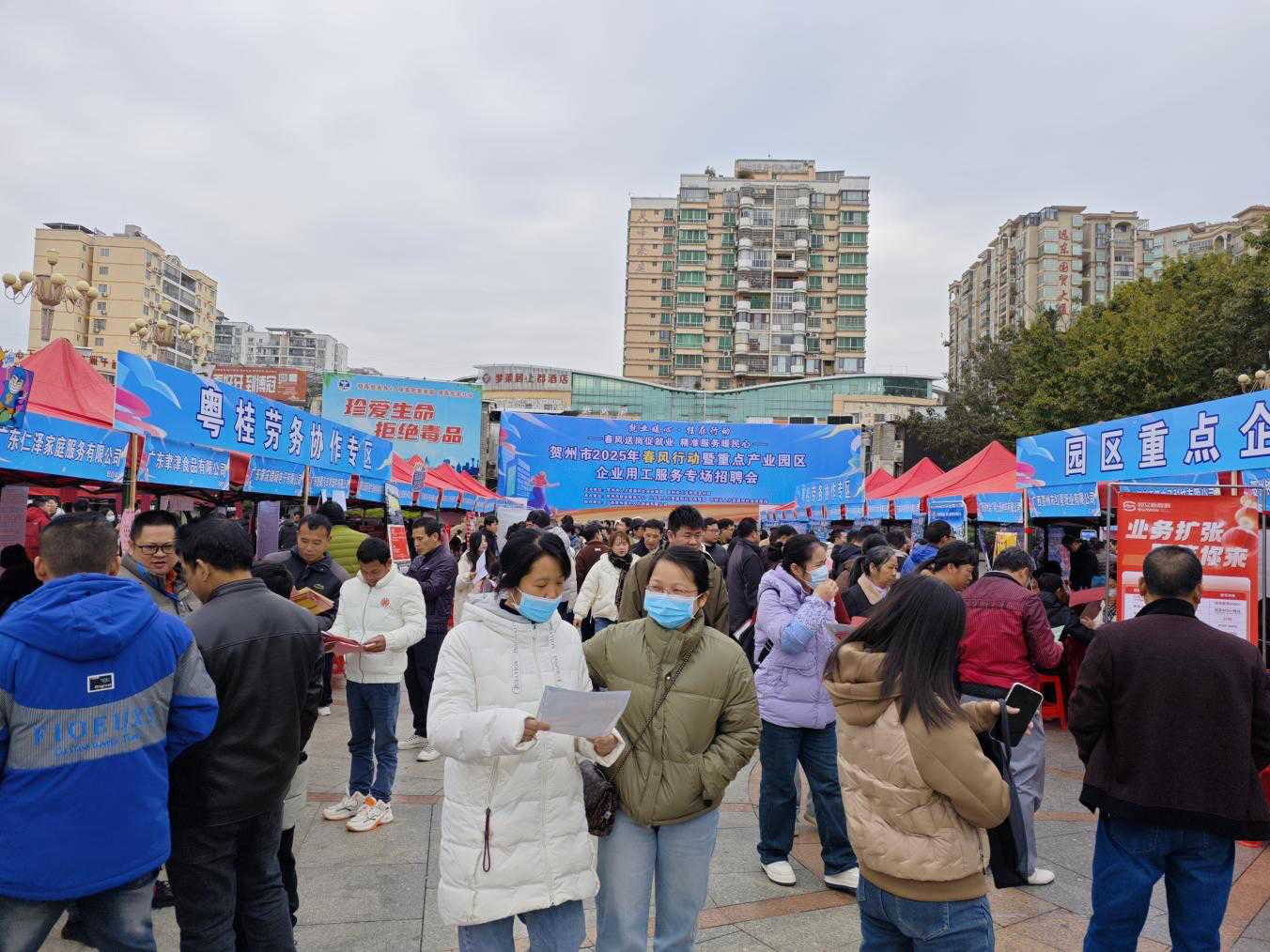 小集市撬动大民生,商圈招聘“不打烊”。春节期间,贺州市人社部门在城区缤纷环球商业综合体开设“就业集市”,从除夕开张至元宵节期间,向群众宣传就业创业政策,发布本地重点园区企业岗位信息,提供“不打烊”的就业服务,借力商圈地理优势满足群众消费、求职双需求。贺州市、县(区)共在商圈设立“就业集市”5个,活动期间吸引求职者5000余人次,进行求职登记和初步达成就业意向超1200人次。“这里既热闹又方便,扫码就能看全市招聘信息!”求职者李女士拿着附带“贺州微就业”二维码的宣传手册点赞。借助商圈的流量优势,还将“线下窗口”延伸至“线上云台”,通过动态发布岗位、开展“直播带岗”,实现就业服务“春节不断线”。