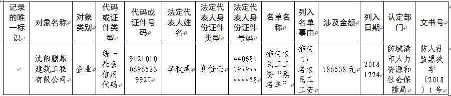 附件:1.2019年第二季度广西拖欠农民工工资“黑名单”信息表