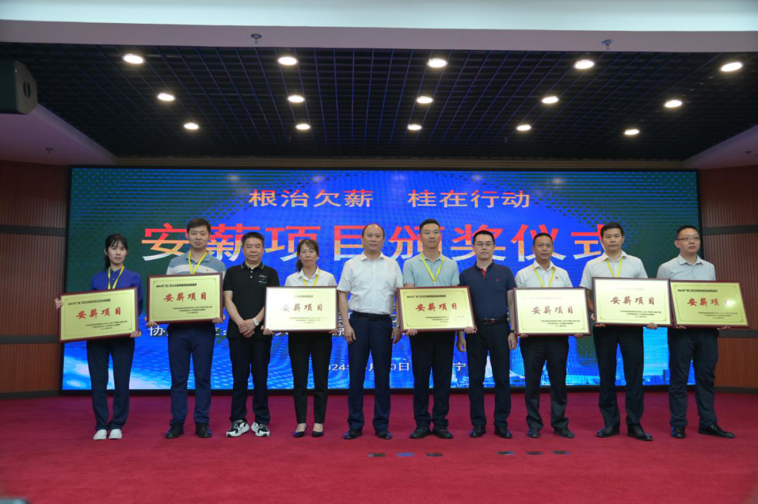 近年来广西多措并举,聚焦工程建设领域,在“抓源头”“治未病”上下功夫,持续推进《保障农民工工资支付条例》及相关配套政策全面覆盖在建工程项目和农民工工资支付各环节,全区根治欠薪工作取得较好成效。此次“安薪项目”选树是广西全面深入贯彻落实国务院就业促进和劳动保护工作领导小组办公室关于开展工程建设领域“安薪行动”的重要工作部署。通过选树“安薪项目”,充分发挥工资支付保障制度标准化建设标杆的示范引领作用,带动属地和行业各类在建工程项目将工资支付保障各项制度有机融合入日常管理中,实现树立一个“安薪项目”,打造一个施工企业,带动一个行业领域,推进全区在建工程项目无欠薪的目标,推动广西根治欠薪工作取得新进展,切实维护农民工劳动报酬权益和社会稳定大局。