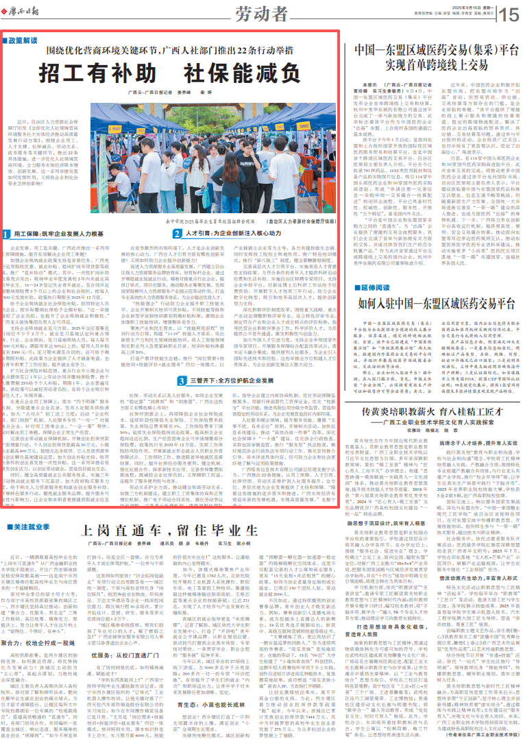 社保、劳动关系以及人社服务,如同企业发展的“稳定器”“润滑剂”和“助推器”。广西在这些方面又有哪些精心布局?