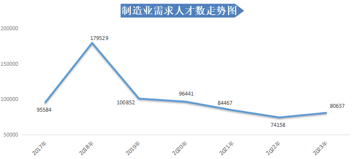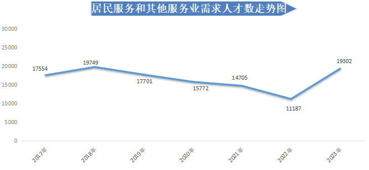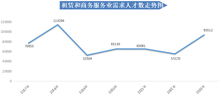 与上年度相比,本年度人才需求增长量排名前三的行业类别分别为:租赁和商务服务业、居民服务和其他服务业、制造业。租赁和商务服务业需求人才数为93512人,比上年度增加38342人,涨幅为69.50%;居民服务和其他服务业需求人才数为19302人,比上年度增加8115人,涨幅为72.54%;制造业需求人才数为80637人,比上年度增加6479人,涨幅为8.74%。