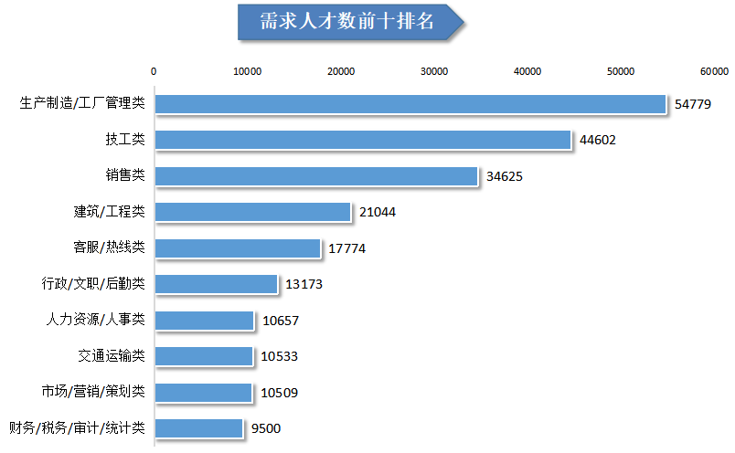 从具体行业看,职业中介服务业、企业管理服务业、通讯/通信设备制造业、机械制造业、工艺品及其他制造业等具体行业的人才需求量均实现突破性增长。