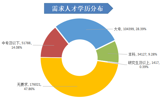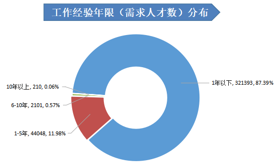 随着经济的不断发展和产业的转型升级,各行业对人才的需求也在不断调整。在24个主要行业类别中,人才需求量排名前三的行业类别分别为:租赁和商务服务业、制造业、信息传输/计算机服务和软件业,这三个行业合计需求人才数占比达到57.41%。