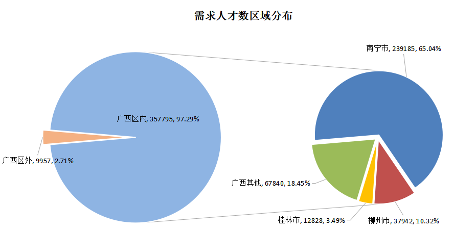 在产业分布方面,广西人才网中第三产业是人才需求的主要支撑,占比为64.08%。