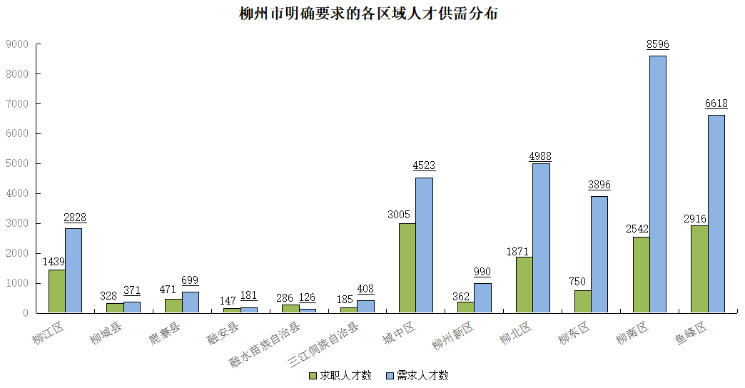 2023年,广西人才网主站的求职人才数与上年度相比增长1.94%,需求人才数与上年度相比微降0.72%,占比分别为82.80%和82.56%。除主站外的其他各市站点合计求职人才数与上年度相比减少2108人,下滑1.36%;需求人才数比上年度减少15381人,下滑23.98%,其中梧州、来宾站的人才需求量与上年度相比减少较多,分别减少6202人和5834人,降幅分别为58.75%和67.65%。