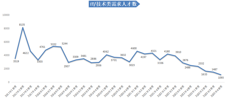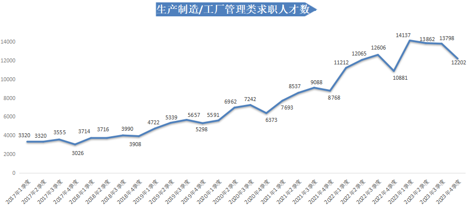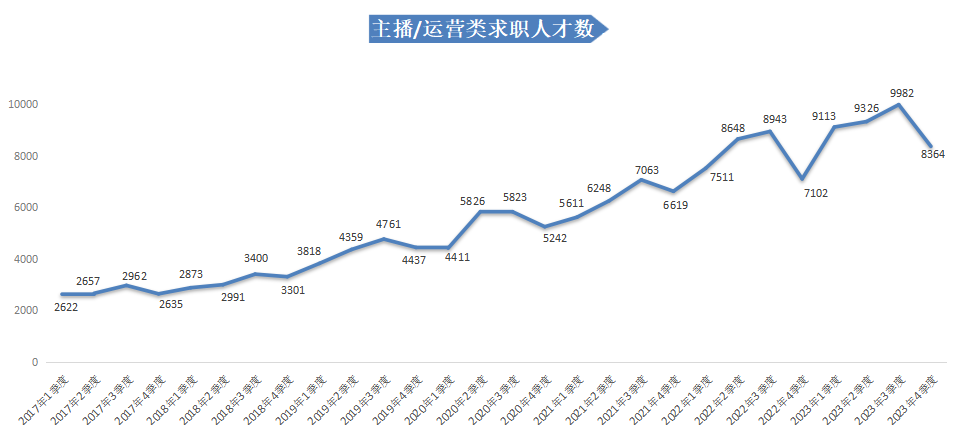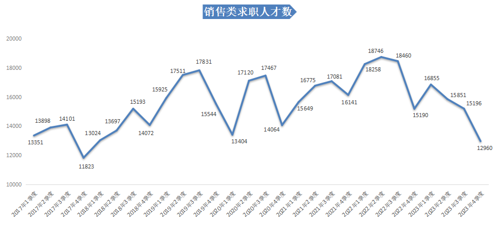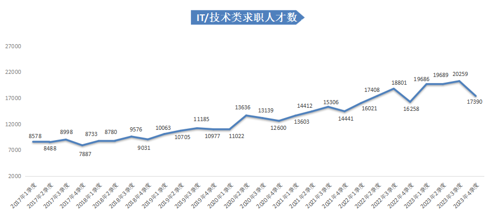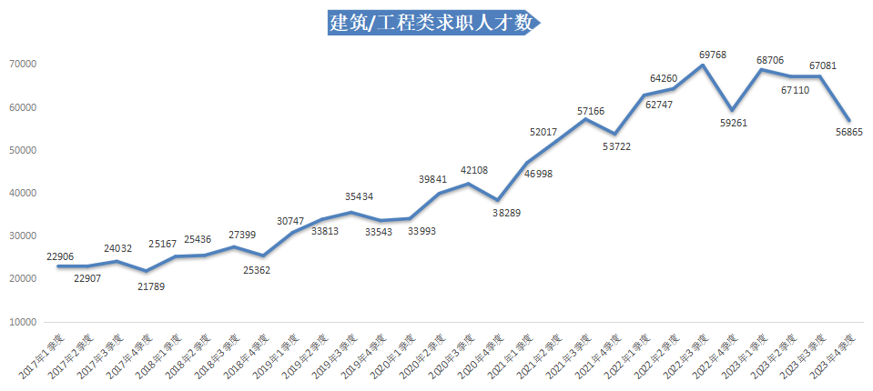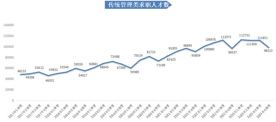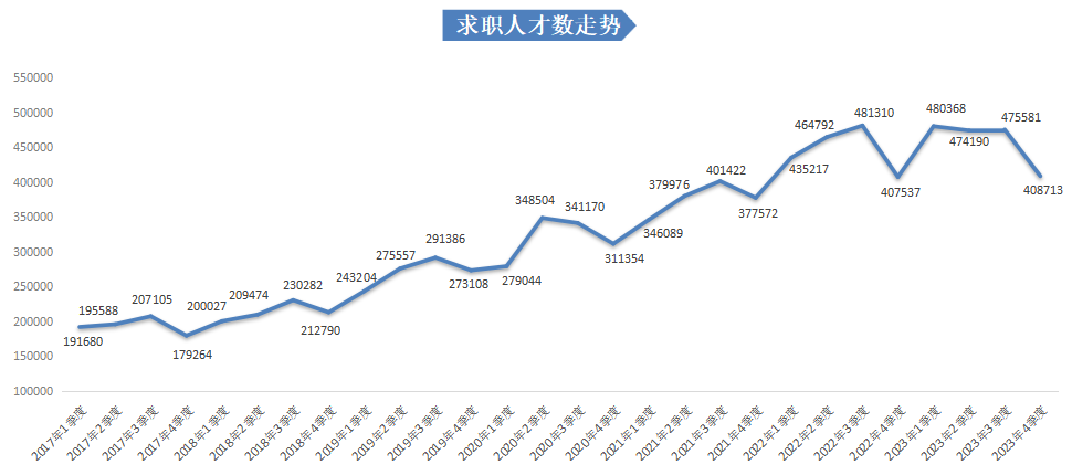 2023年第四季度,广西人才网中求职人才数虽因季节性回落,达408713人,环比下滑14.06%,但与上年同期相比基本持平,微增0.29%。