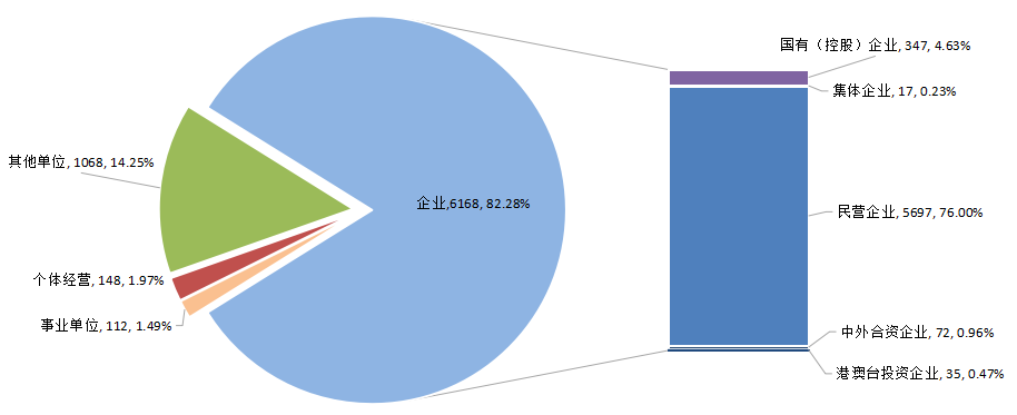 2023年第四季度,广西人才网中用人单位数量为7496家,同比下滑15.09%,用人单位中企业共有6168家,同比下滑21.04%,占比82.28%,其中民营企业为5697家,同比下滑17.39%。