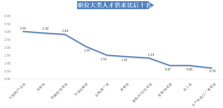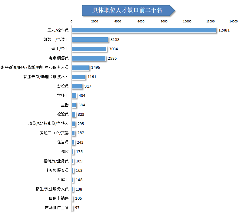 另外,有16个行业类别的人才需求相较于上年同期出现不同程度的下滑。制造业人才需求量减少明显,需求人才数比上年同期减少11776人,同比下滑41.90%;居民服务和其他服务业、建筑业的人才需求量同比减少也较多,均超过2000人,分别减少3319人和2791人,同比降幅分别为60.91%和34.78%。