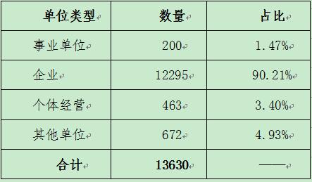 其中,用人单位中企业数量比上年同期减少60家,同比微跌0.49%