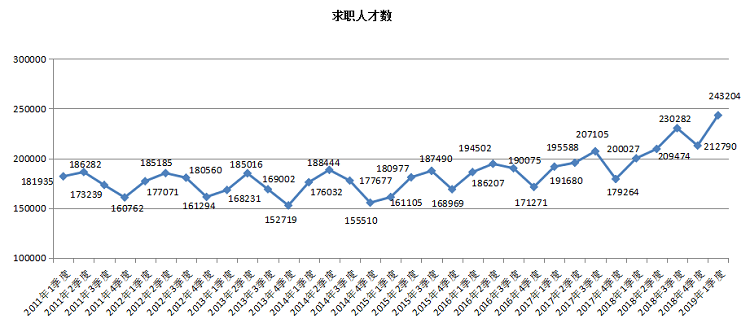 2019年第一季度,广西人才网联系统中文教/科研类职位的求职人才数为7330人,比上年同期增加1810人,同比涨幅达到32.79%