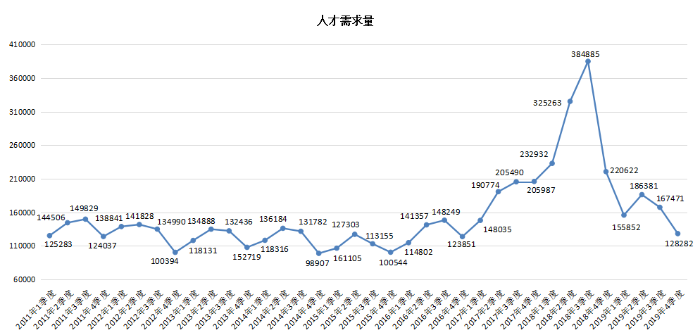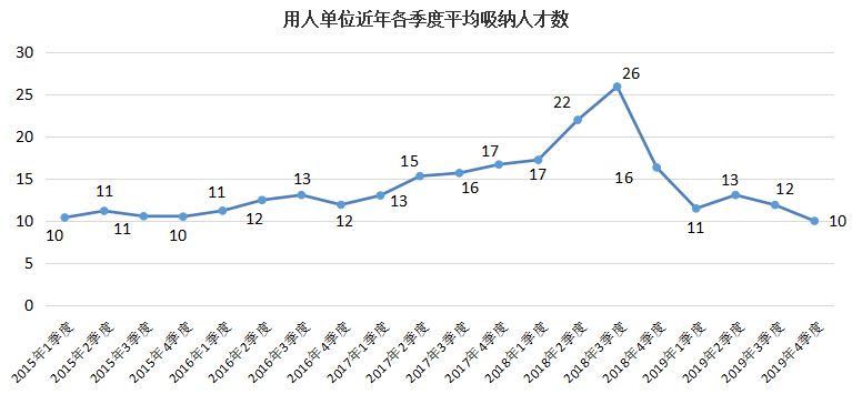 近年各季度用人单位平均吸纳人才数量走势见下图: