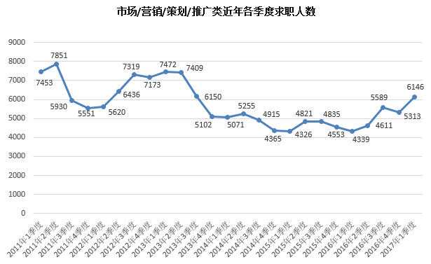 1.市场/营销/策划/推广类职位人才供应量大幅回升