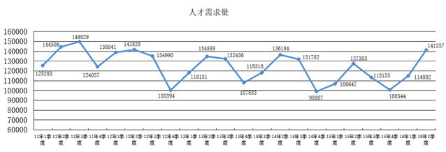 2016年二季度,进入招聘市场旺季,通过广西人才网联系统招聘人才的用人单位共11373家,与去年同期相比基本持平,但是需求人才数在三年后重新站上14万人级的平台,达到141357人,同比增长11.04%,环比大幅增长23.13%。