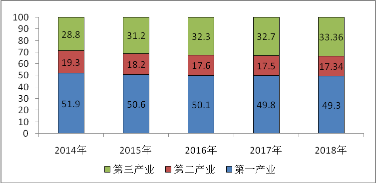 年末全自治区就业人员2848万人,比上年末增加6万人;其中城镇就业人员1282万人,比上年末增加35万人。全自治区就业人员中,第一产业就业人员占49.30%;第二产业就业人员占17.34%;第三产业就业人员占33.36%。