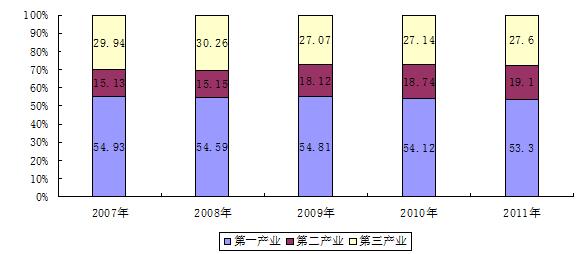 年末全区就业人员2936万人,比上年末增加33万人。其中,第一产业就业人员1565万人,占全区就业人员的53.3%;第二产业562万人,占19.1%;第三产业809万人,占27.6%。