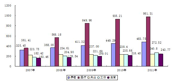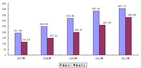 社会保障制度不断完善,各项社会保险覆盖范围继续扩大,参保人数和基金规模持续增长。全年五项社会保险(不含新型农村社会养老保险和城镇居民社会养老保险)基金收入合计403.72 亿元,比上年增加20.3亿元,增长5.29%。基金支出合计326.89 亿元,比上年增加66.53亿元,增长25.56%。