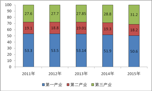年末全区就业人员2820万人,比上年末增加25万人;其中城镇就业人员1198万人,比上年末增加53万人。全区就业人员中,第一产业就业人员占50.6%;第二产业就业人员占18.2%;第三产业就业人员占31.2%。