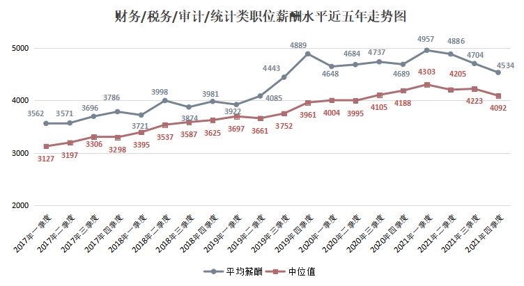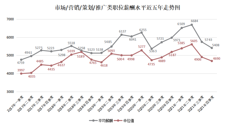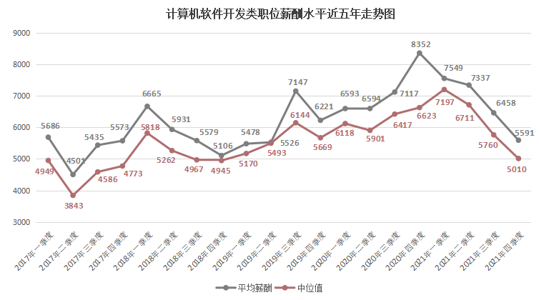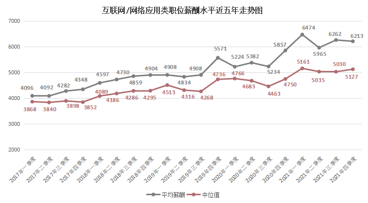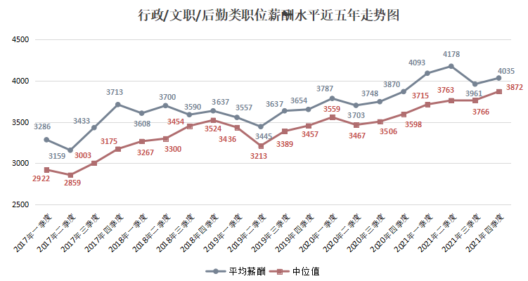 其中,用人单位发布职位薪酬的中位数(其定义见注5,下同)为4722元/月,比去年的4499元/月增长4.96%。