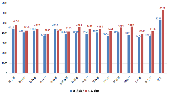 注2:本报告所指薪酬是广西人才网联系统中用人单位发布职位或求职者期望的税前总体收入水平,包含个人所缴纳的五险一金等内容(即应发工资),其展现的是招聘过程中职位对应的收入水平,主要折算为月薪进行计算,供用人单位和求职者参考使用。