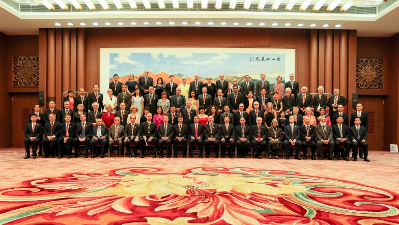 图为2017年中国政府“友谊奖”颁奖合影,李克强总理、张高丽副总理和马凯副总理参与会见合影