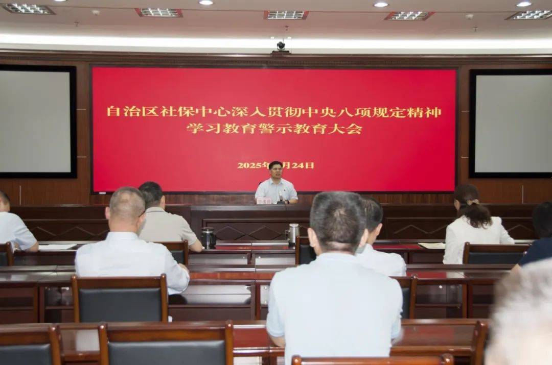 6月24日,自治区社保中心召开深入贯彻中央八项规定精神学习教育警示教育大会,自治区社保中心党委书记、主任罗俊鑫主持会议并讲话。