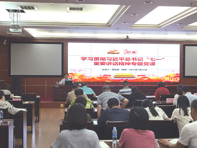 7月21日,自治区社保中心党委书记、主任罗俊鑫同志开展习近平总书记“七一”重要讲话精神宣讲,为中心全体党员干部讲授党史学习教育专题党课。
