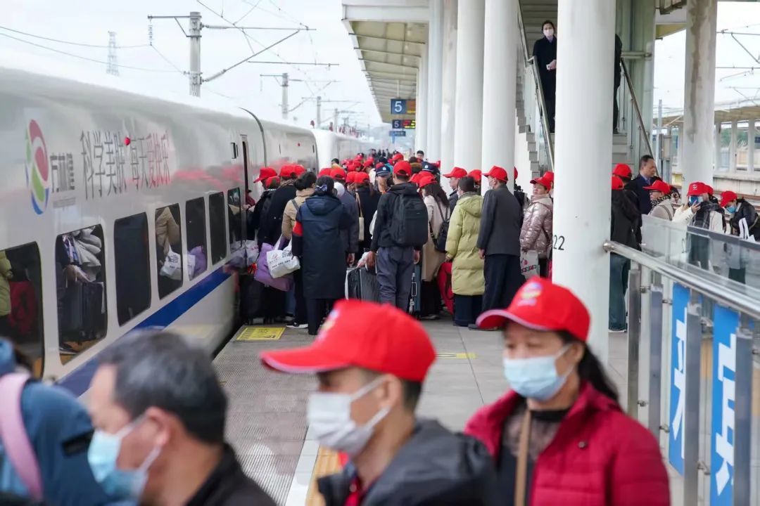 13时,在人社部门及铁路部门工作人员的引导下,务工人员有序登上D3755次列车,踏上赴粤返岗务工的路途,这是今年广西首趟免费“点对点”返岗专列,拉开了全区年后返岗复工序幕。“之前就在网上了解到有免费的返岗务工专列活动,就报名试试,没想到真的获得了免费乘坐专列的机会。往年过完年我们去打工抢票难,拎着大包小包进站难,这次不仅可以免费乘坐动车,还有中巴车将我们从乡镇接到火车站,服务非常贴心,非常感谢政府!”务工人员杨兵说道。
