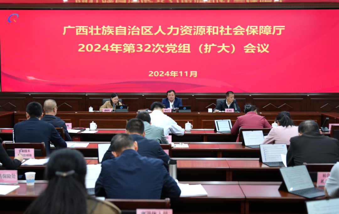 11月27日,自治区人力资源社会保障厅召开第32次党组(扩大)会议,传达学习习近平总书记在湖北考察时的重要讲话精神,以及《中共中央 国务院关于深化产业工人队伍建设改革的意见》精神,研究贯彻落实措施。厅党组书记、厅长唐标文主持会议并讲话。
