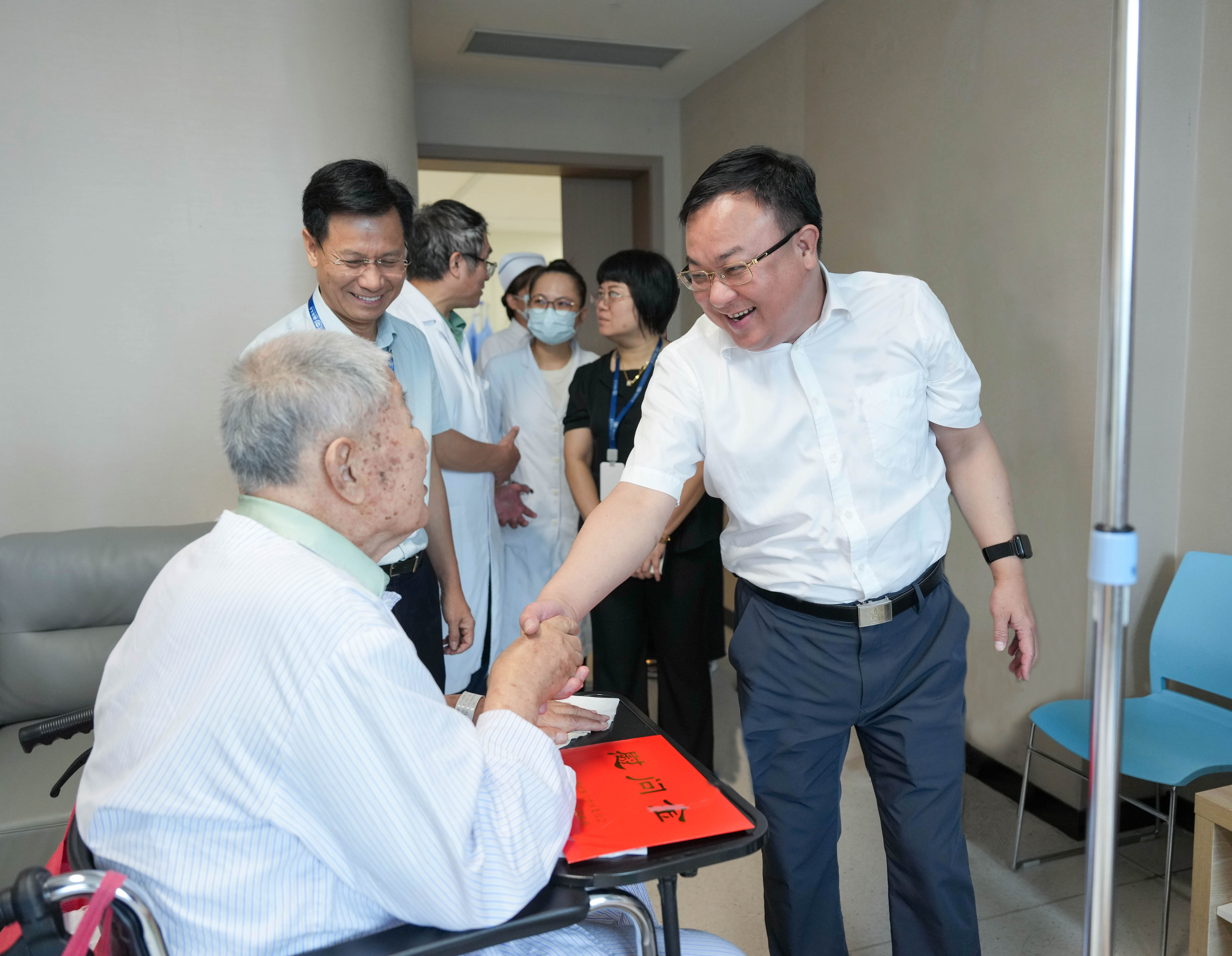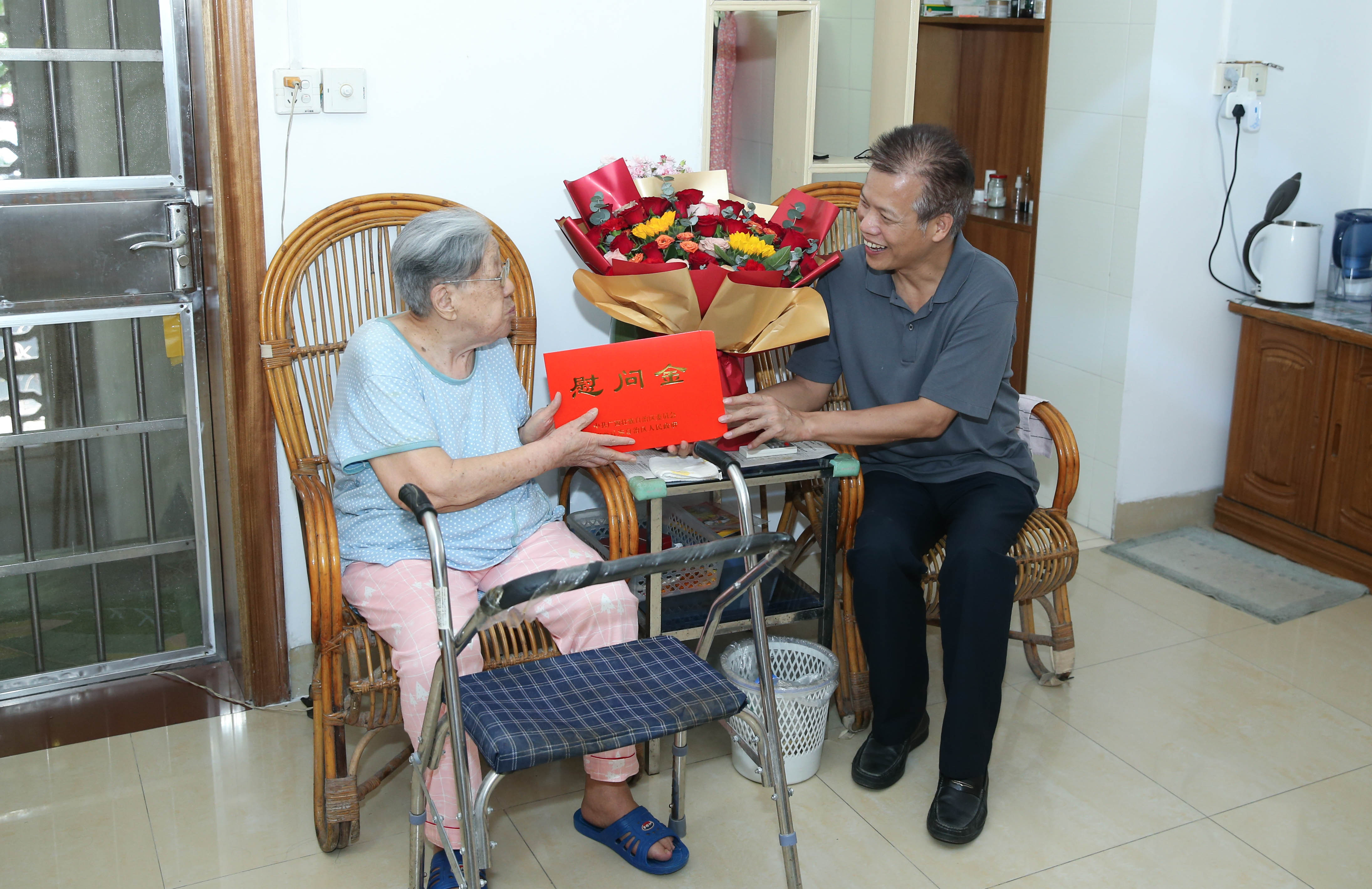 9月26日,唐标文来到前海人寿南宁医院,看望慰问在此疗养的离休干部刘贤明。“刘老您身体最近怎么样?我们来看望您了!”唐标文详细询问刘贤明的身体状况和生活情况,送上慰问品和慰问金,感谢他一直以来为党和国家事业作出的积极贡献,祝他健康长寿、阖家幸福。
