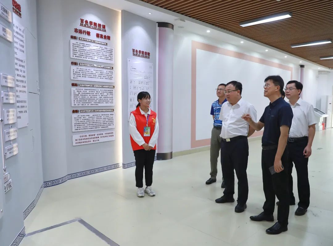 6月15日下午,唐标文一行前往百色学院和右江民族医学院,参观学院校史馆和大学生就业实训基地,听取两所学院的总体介绍,观摩学生课堂实操,详细了解办学规模、师资配备、学科设置、毕业生就业去向及薪资待遇等情况,并与学院部分教师沟通交流。