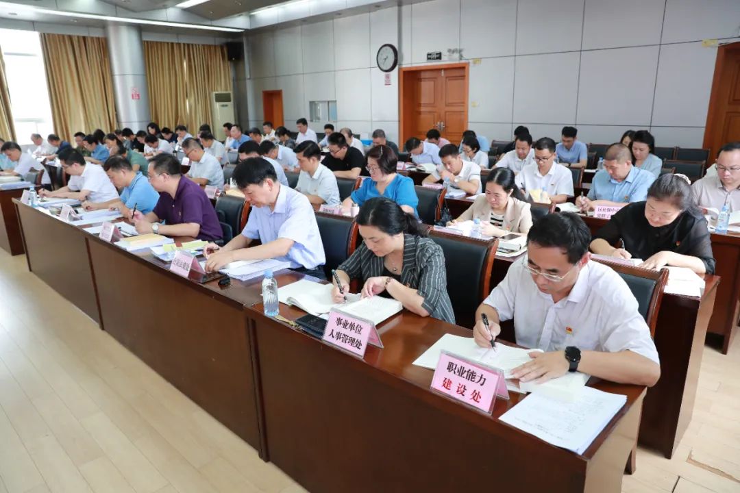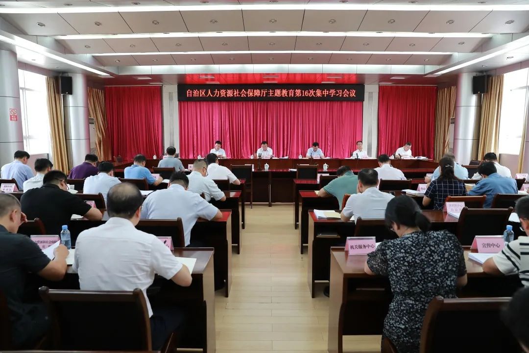 8月17日,自治区人力资源社会保障厅召开学习贯彻习近平新时代中国特色社会主义思想主题教育第16次集中学习会议。厅党组书记、厅长唐标文作学习总结。厅党组副书记、副厅长袁国华,厅党组成员、副厅长辛卫红先后领学并结合工作实际谈体会。