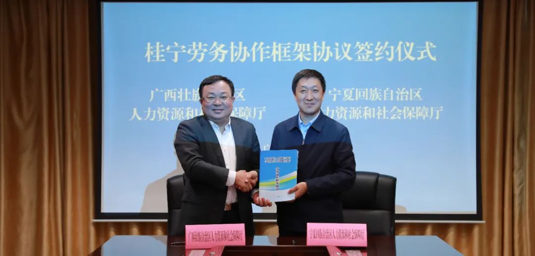 在随后举行的签约仪式上,唐标文、李晓波代表广西壮族自治区人力资源和社会保障厅、宁夏回族自治区人力资源和社会保障厅签署《桂宁劳务协作框架协议》。