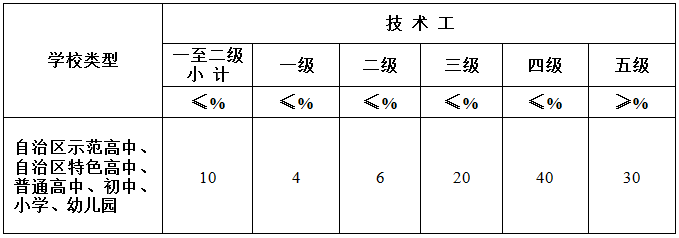 5.中小学、幼儿园教师岗位执行本单位专业技术岗位最高等级结构比例标准。其他辅助系列专业技术岗位最高等级应低于教师岗位的最高等级。