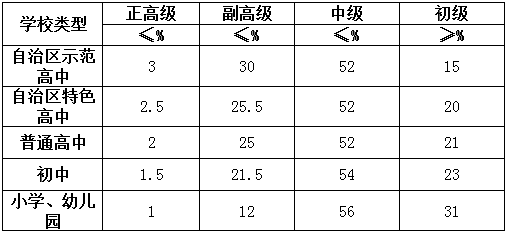 (一)高级中学:教师岗位数量占学校岗位总量的比例一般不低于84%,其他岗位一般不超过16%。