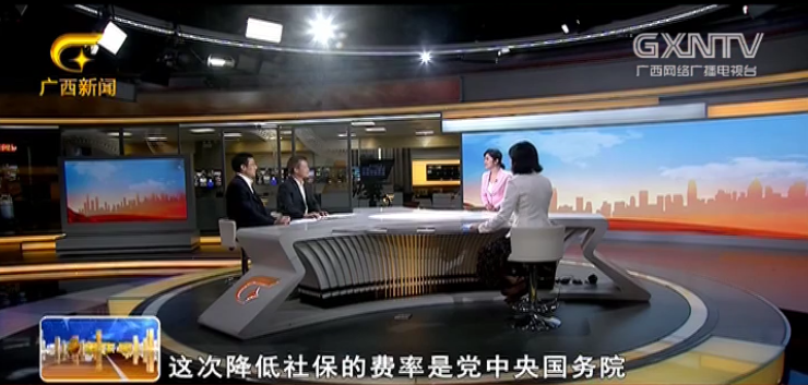 主持人:今年4月26日,自治区人力资源社会保障厅和财政厅联合印发了《降低社会保险费率实施方案的通知》,内容主要涉及职工基本养老保险、失业保险和工伤保险的3个方面4项内容。现在新的政策已经实施了,可能还有不少群众不太了解这个社保降费具体怎么降,和咱们用工单位及老百姓的关联是如何呢?今天的节目我们请到3位嘉宾,他们是自治区人力资源社会保障厅副厅长乐永红、广西财经学院财政与公共管理学院副教授江燕娟、广西建工集团第五建筑工程有限责任公司人力资源部总经理谭全峰,欢迎各位的到来。