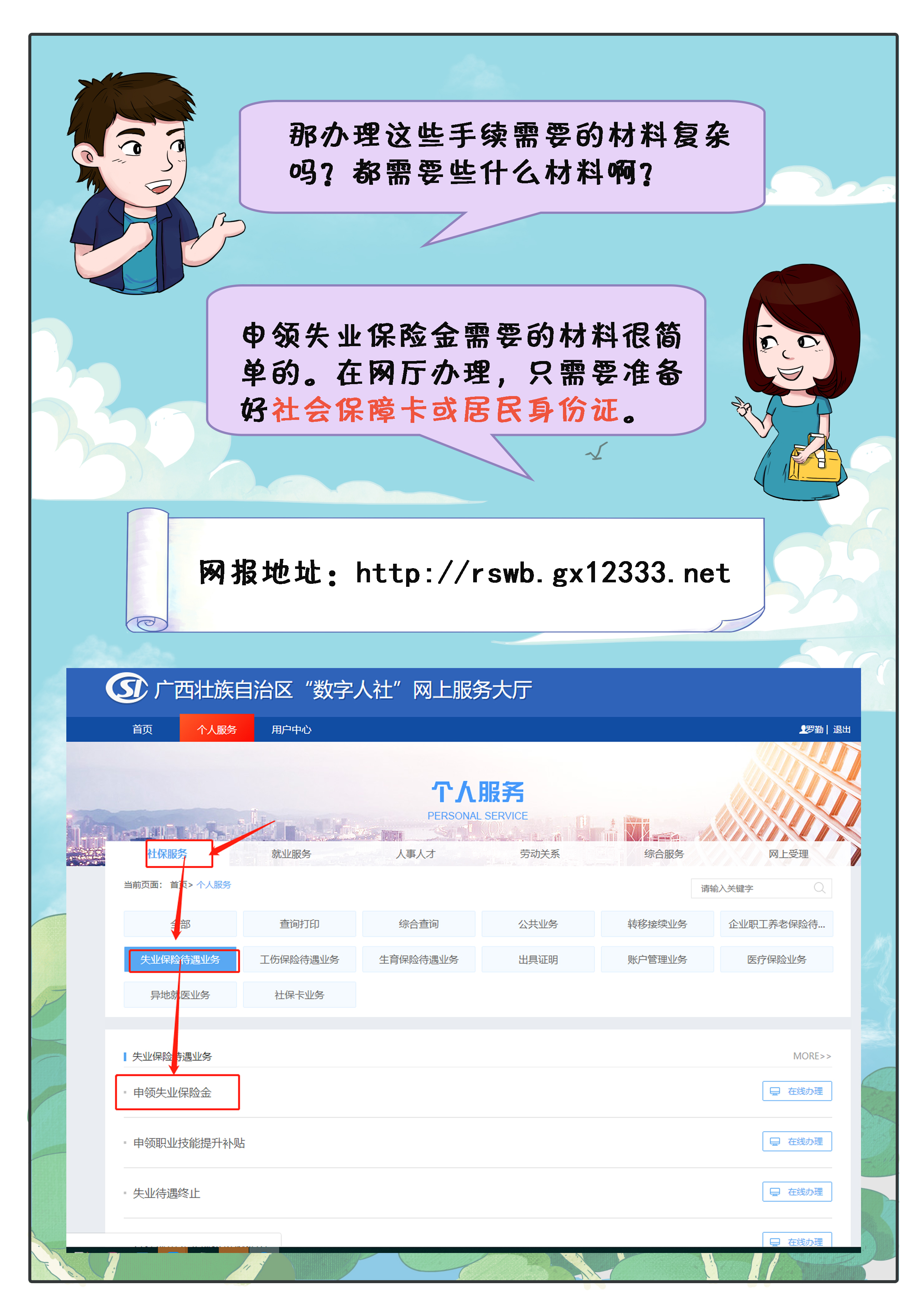 【政策漫画】广西人社政策漫画小剧场——失业保险金申领