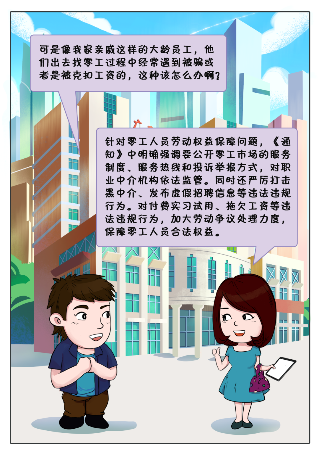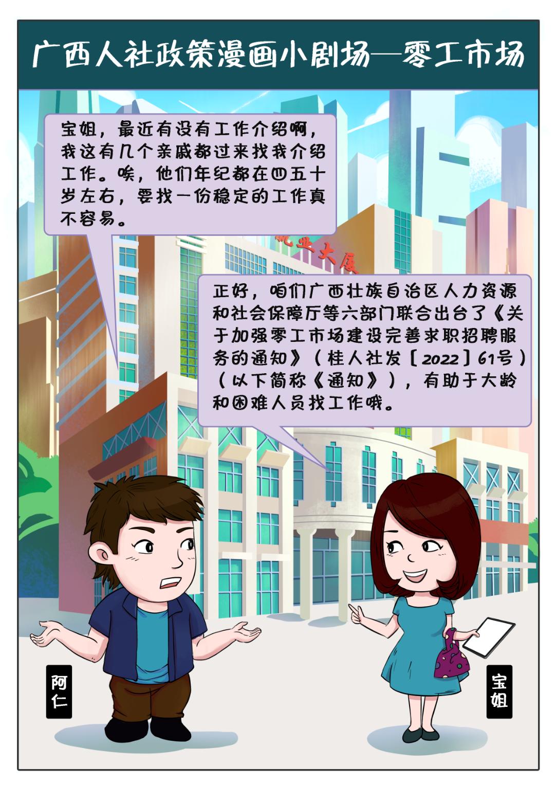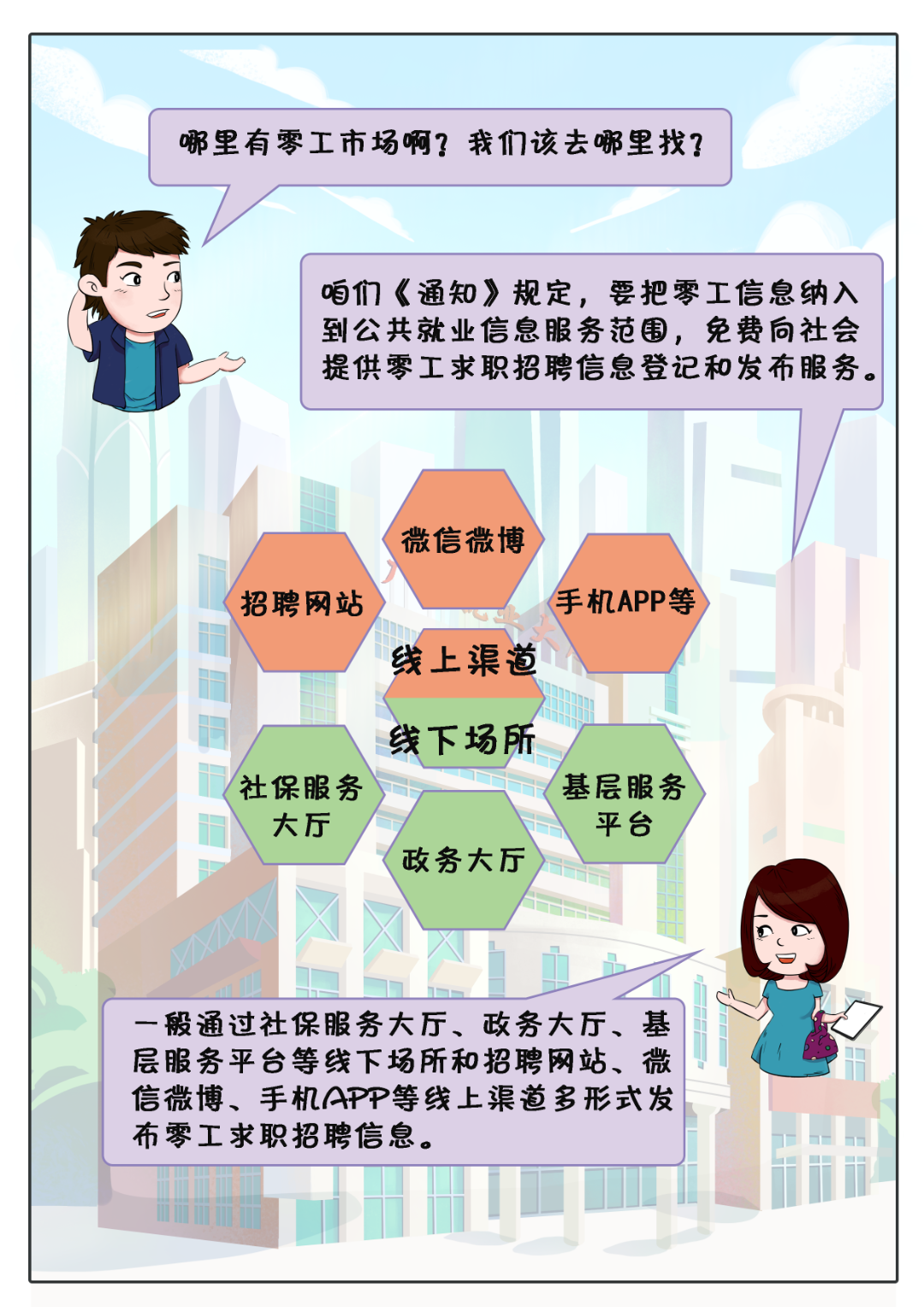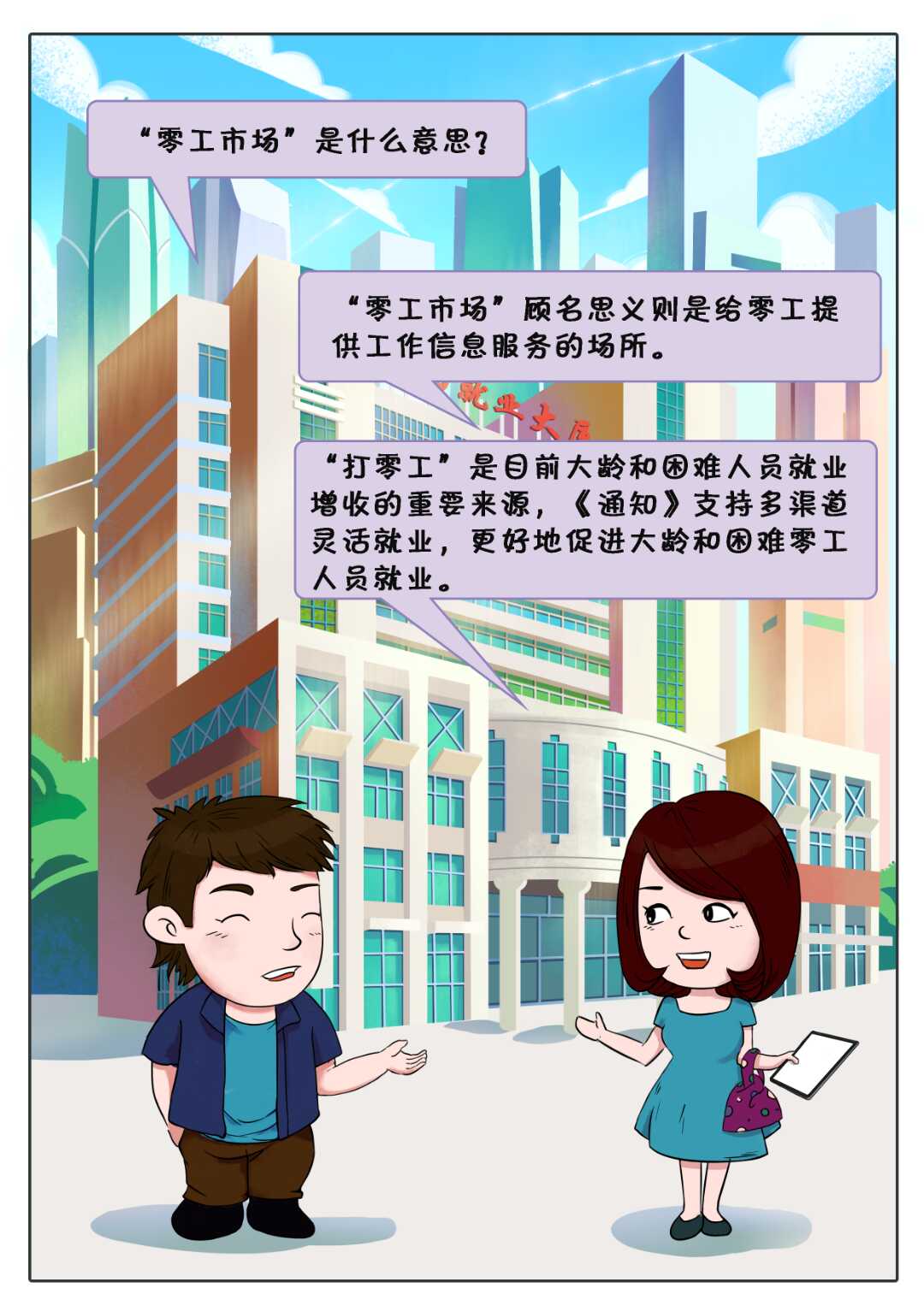 【政策漫画】广西人社政策漫画小剧场——零工市场政策