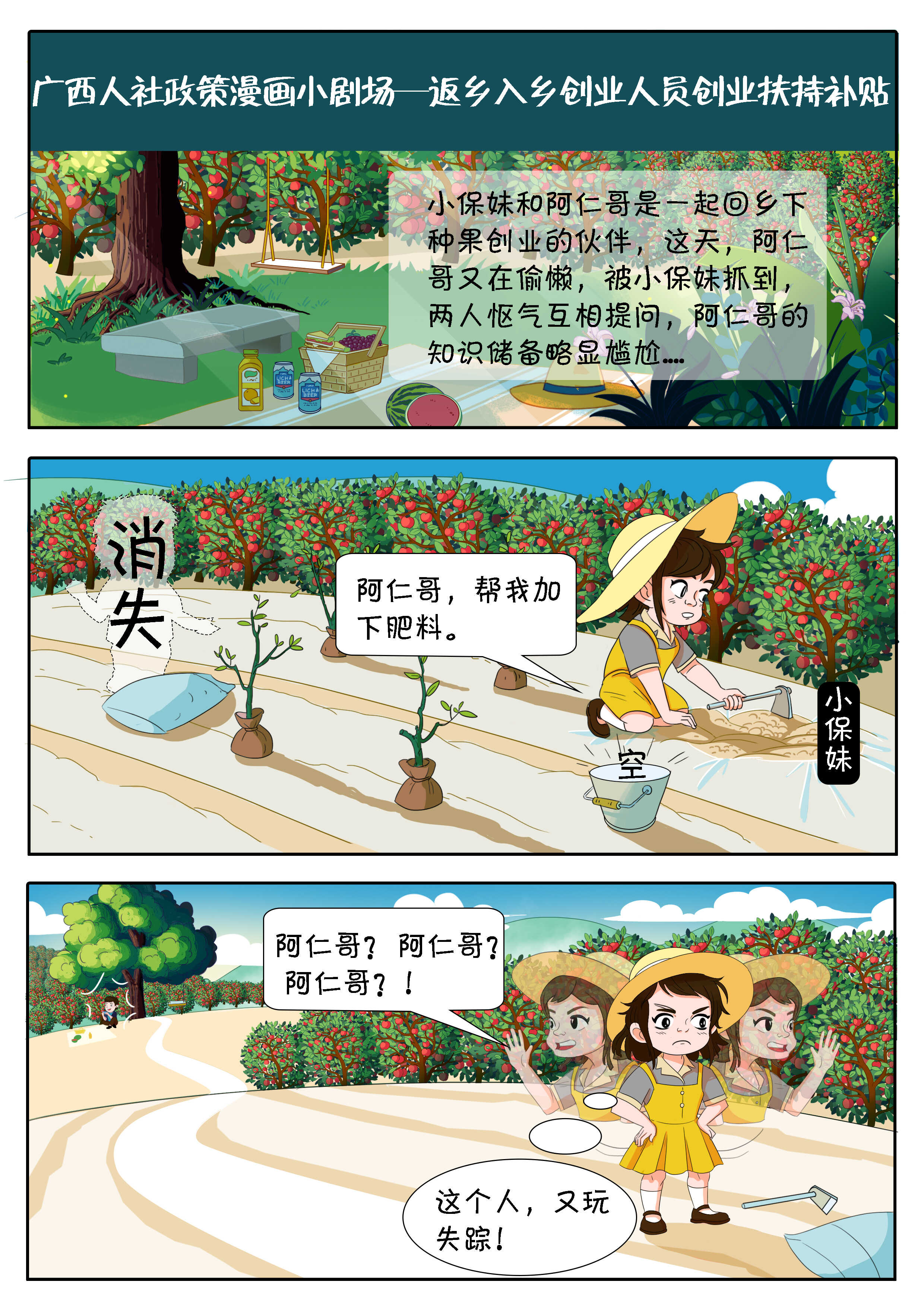 【政策漫画】广西人社政策漫画小剧场——返乡入乡创业人员创业扶持补贴