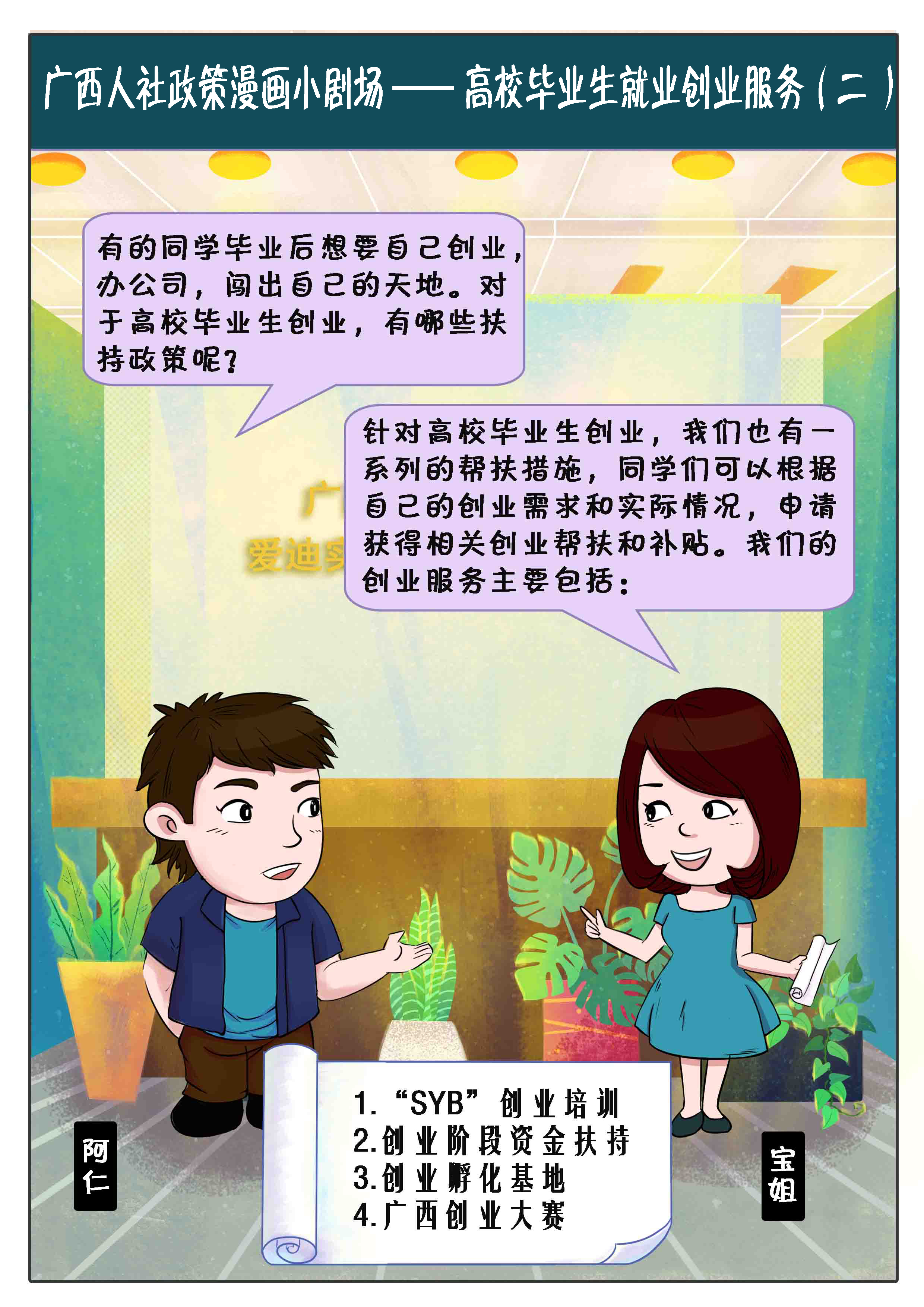 【政策漫画】广西人社政策漫画小剧场——高校毕业生就业创业服务(二)