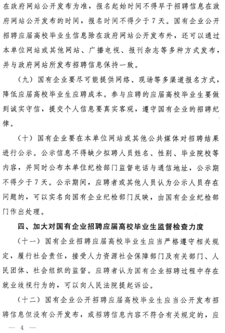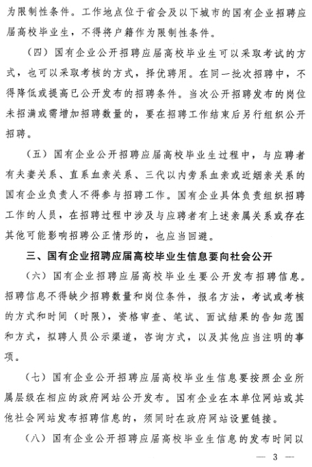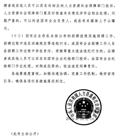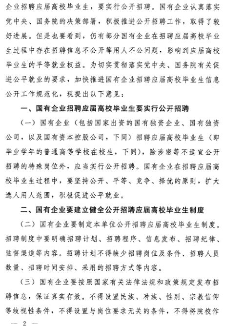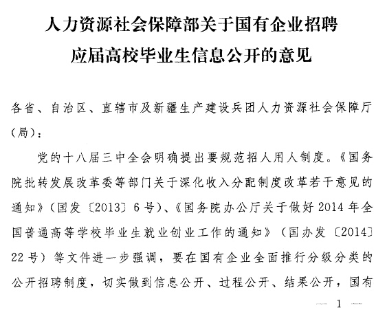 人力资源社会保障部关于国有企业招聘应届高校毕业生信息公开的意见