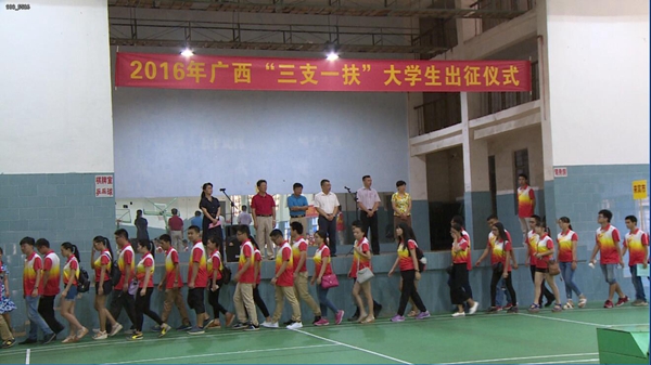 8月19日,广西2016年招募的800名“三支一扶”大学生整装待发,在简短的出征仪式后,他们开始奔赴广西各地开展为期两年的支教、支农、支医、扶贫基层服务工作。