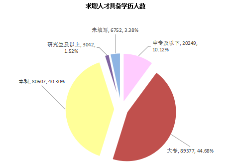 2018年第一季度,广西人才网联系统求职人才学历长期集中在大专和本科学历,其求职人才数占比分别为44.68%和40.30%,大专和本科学历的求职人才共计169984人,与上年同期的161729人相比增加8255人,小幅增长5.10%。